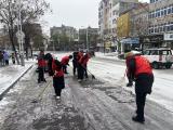 图说:红安县城关镇组织镇村社区干部和志愿者开展迎寒保畅