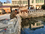 图说:清理当家塘垃圾 守护碧水迎新春