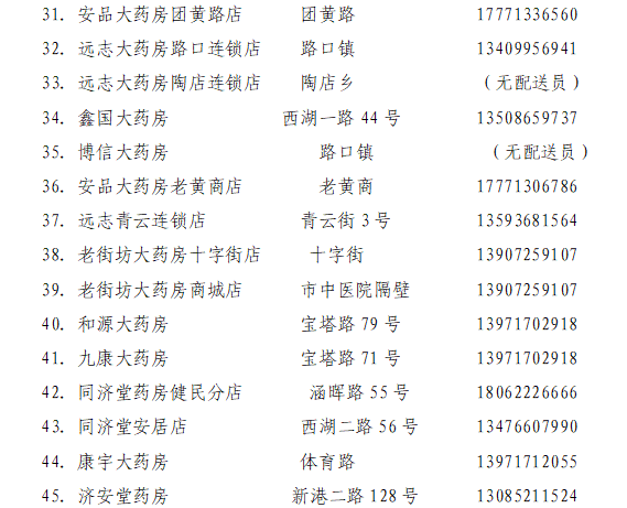 二、关于药品购置问题。所有药店将及时拓展采购范围,确保基本品类齐全,供应充足。一般性用药人群,实行药品代购服务;特殊人群的处方用药,实行“一对一”送药服务,已确定职业药师作为联络员;可将自己的需求向社区(小区)申报或直接与公布的药店及职业医师联系(具体见附件2),由职业药师点对点配送。
