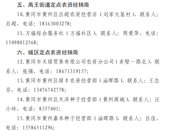 四、关于农资购买问题。全区农资储备充足,已确定20家定点经销商,农户购买农资可向所在村组申请,由乡镇(街道、园区)组织,以村组为单元统一配送(具体见附件4)。