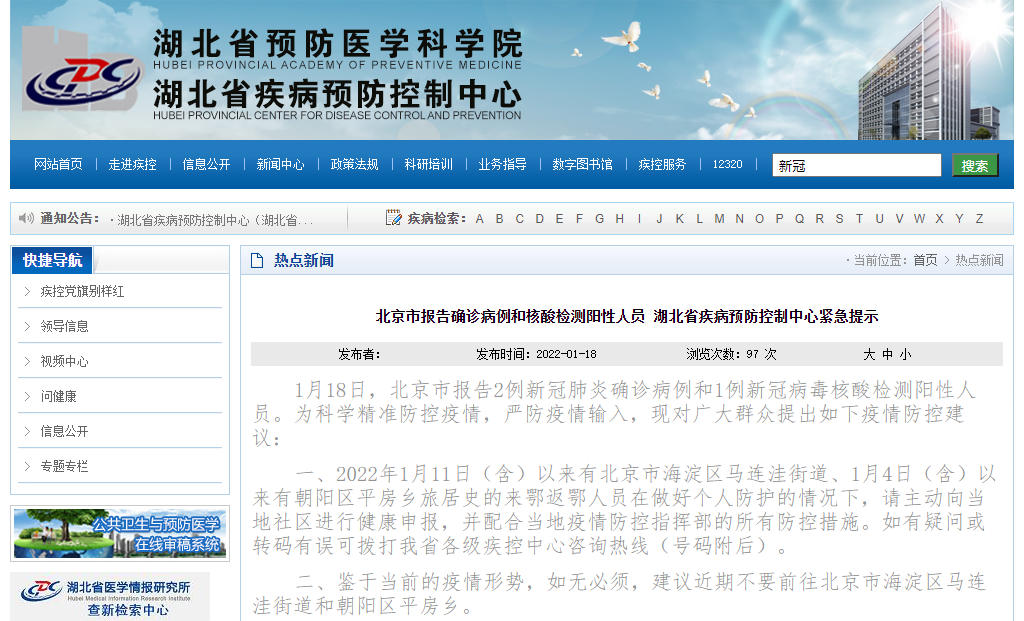 一、2022年1月11日(含)以来有北京市海淀区马连洼街道、1月4日(含)以来有朝阳区平房乡旅居史的来鄂返鄂人员在做好个人防护的情况下,请主动向当地社区进行健康申报,并配合当地疫情防控指挥部的所有防控措施。如有疑问或转码有误可拨打湖北省各级疾控中心咨询热线(号码附后)。