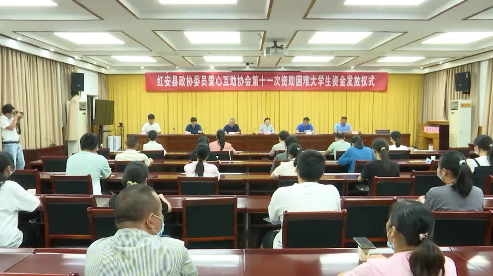红安网消息 8月16日上午,红安县政协委员爱心互助协会举行第十一次资助困难大学生资金发放仪式,为全县20名困难大学新生每人发放了3000元的爱心资助金,共计60000元。县政协主席张凤珍,副主席吴昀,秘书长石胜芳出席发放仪式。