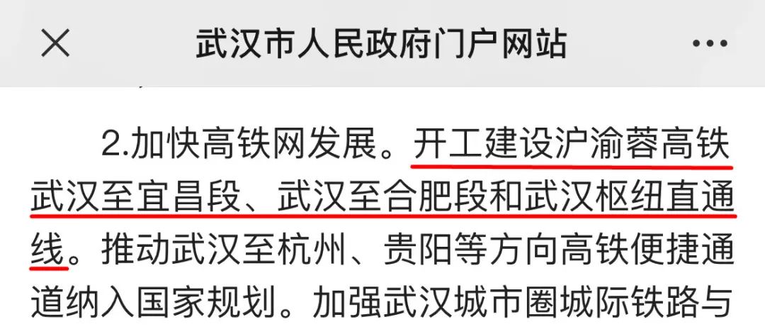 加快高铁网发展:武汉将开工建设沪渝蓉高铁(沿江高铁)武汉至宜昌段、武汉至合肥段和武汉枢纽直通线。