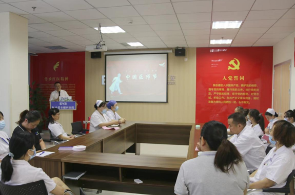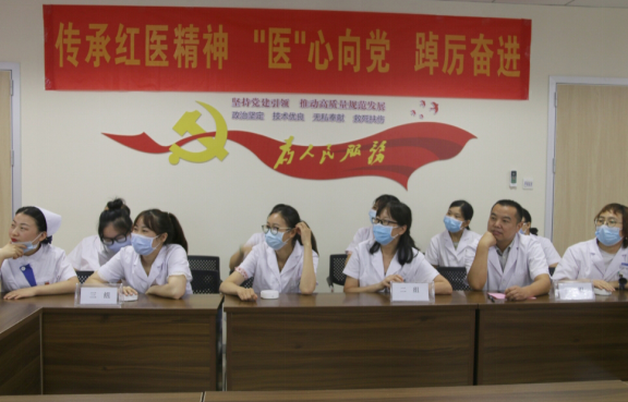 医院CEO兼党支部书记陈剑带领全体医生、优秀青年、入党积极分子认真学习了红医精神的内涵、红安籍红医先烈戴醒群的革命事迹,号召全体医务工作者践行政治坚定、技术优良、无私奉献、救死扶伤的红医精神。
