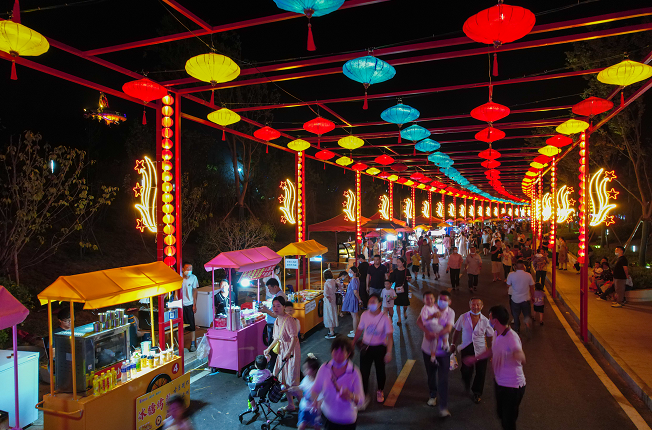 与此同时,钓鱼台星光夜市灯火通明,人头攒动,小吃摊主们忙着为顾客煎炸各色美食。“小食街的人特别多,很热闹,有很多特色小吃。我刚品尝了臭豆腐和烤串,臭豆腐闻起来臭,吃起来特别香;烤串外焦里嫩,有机会一定带朋友家人吃一吃,逛一逛。”游客代传坪说。