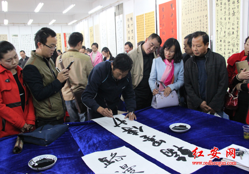 红安网消息 卢杰锋报道:10月30日上午,红安县教师书法协会成立暨第一会员代表大会在龙泉小学举行。会议以举手表决的方式通过了红安县教师书法协会章程和理事会人员名单。 据了解,红安县教师书法协会旨在为广大教师开辟更为广阔的书法艺术天地,为青年教师和学生成长成才搭建更加坚实的平台。该协会成功举办了“翰墨薪传”书法展览;在今年全省中小学教师书法大赛上有8名教师取得优异成绩。 目前,该协会有会员110余人,协会将积极开展教师书法作品巡展送教下乡,新年迎新送福,中小学生书法比赛等一系列活动。