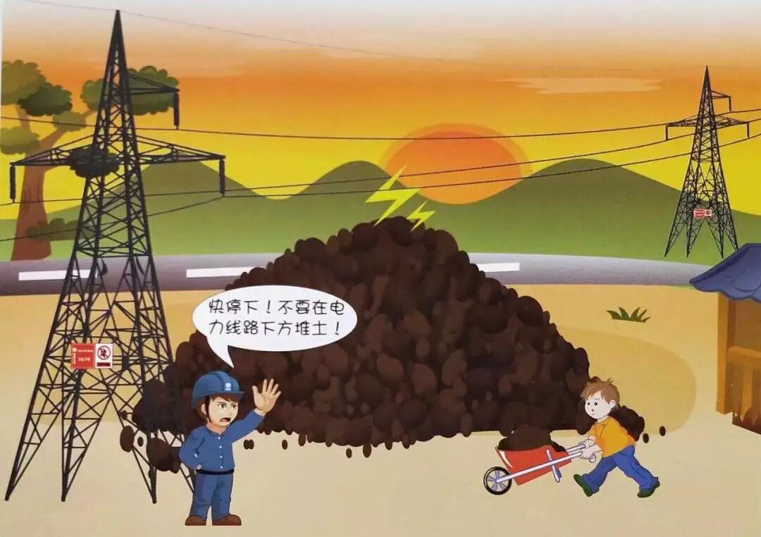 线路下方勿堆土,高压电线似猛虎