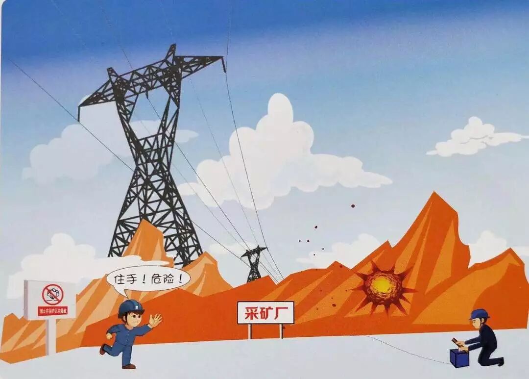 线路附近勿爆破,炸伤线路引灾祸。