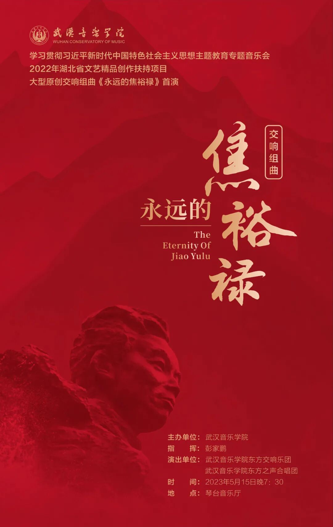 2023年5月15日(周一)晚7:30,由武汉音乐学院创作完成的大型原创交响组曲《永远的焦裕禄》将在琴台音乐厅首演。著名指挥家彭家鹏携手武汉音乐学院优秀创作、表演团队,带领江城观众重温“人民的好公仆”焦裕禄的感人故事。