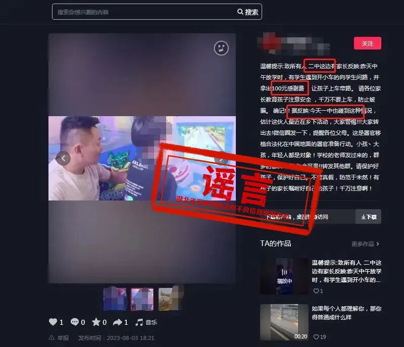 或许会有群众觉得,转发这样的谣言,既没有造成财产损失,又能提醒大家多多注意,是一件“好事”。