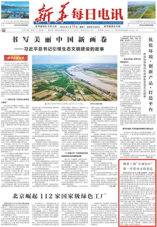 今日《新华每日电讯》头版刊发《湖北十堰“全域治污”保一库碧水永续北送》,聚焦十堰在守护碧水北送中的经验做法。一起来看看吧!