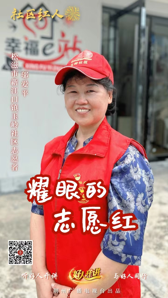 松滋市新江口镇玉岭社区梨子山网格志愿者服务队队长 邬爱平:加入志愿者队伍以后,我的生活更加快乐,更加幸福了!跟军人爱上绿色的军装一样,我也爱上这身红马甲。