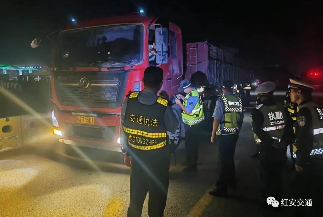 红安网消息 为保障区域公路安全畅通,切实做好“中秋”“国庆”双节期间交通运输执法监管工作,9月26日晚,武汉市新洲区和红安县两地治超办组织交通执法、公安交警在G230、S234开展跨区域道路运输联合整治行动。