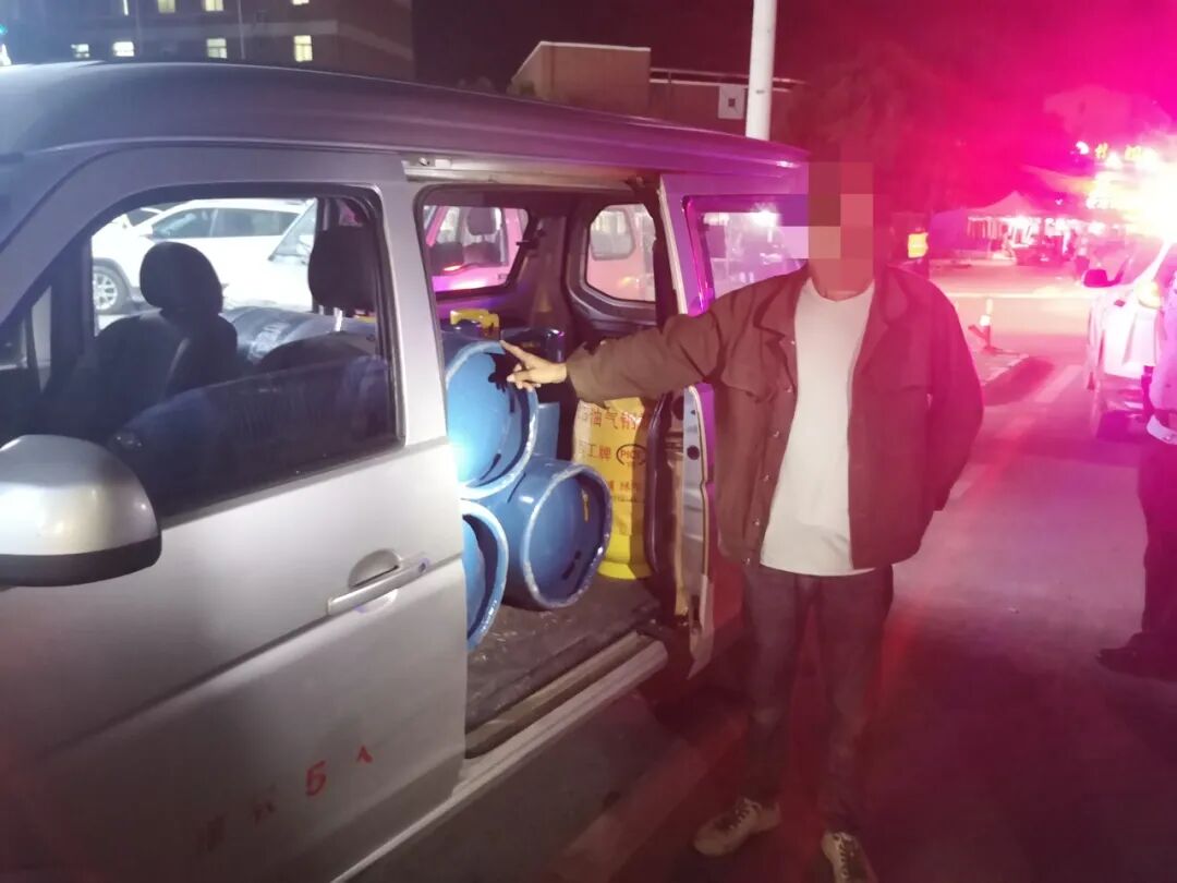 经现场查看,该车车厢内装载有半车罐装液化石油气,民警核实共10罐。民警立即对其车辆进行核查,发现该车没有危险品运输许可证,车内也没有安全防护措施和警示标志,并不具备运输危险物品的安全条件,涉嫌从事道路危险品货物运输。“车内存放大量液化石油气,全封闭的车厢又没有防撞设置,车辆和驾驶员均不具备从事道路危险货物运输的资质,无异于一颗流动的“定时炸弹”,一旦发生意外,后果不堪设想!
