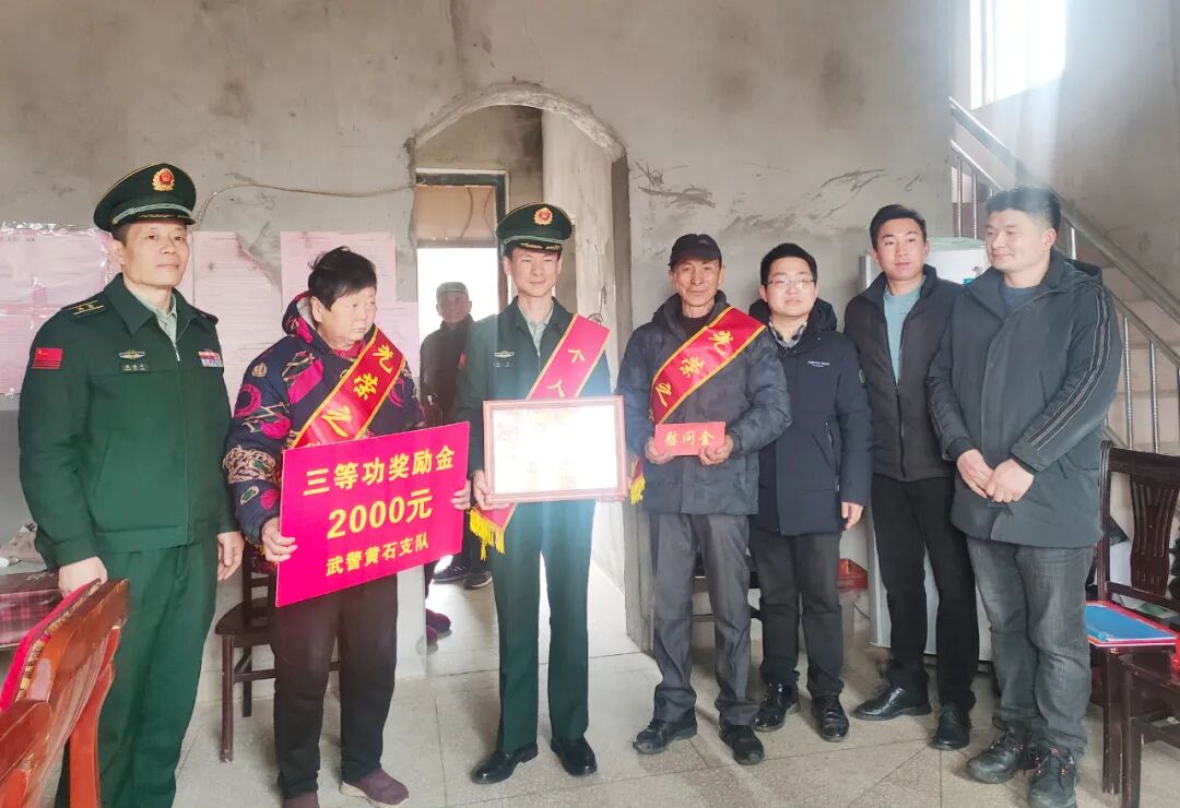 红安网消息 建功在军营,喜报传家乡。2月28日,红安县退役军人事务局协同武警黄石支队等一行深入觅儿寺镇新集街村,大张旗鼓为荣立个人三等功的现役军人阮翔同志家属送立功喜报,对其在部队取得的荣誉表示热烈祝贺,向家属的默默付出表示衷心感谢。