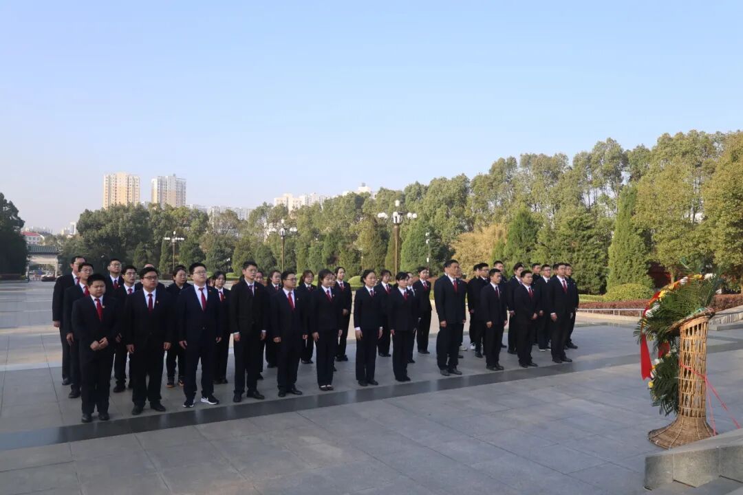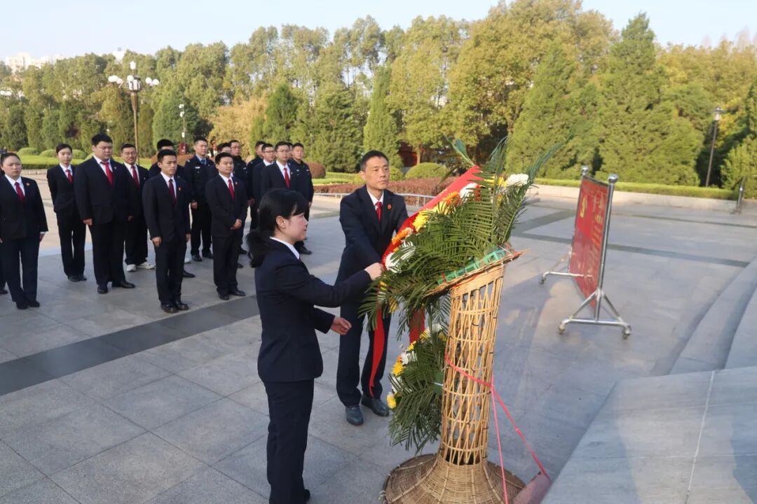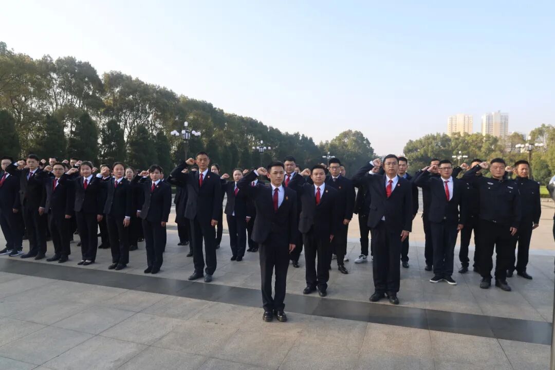 拾阶而上,园内松柏葱郁,静谧肃穆,干警们来到纪念碑前敬献花篮、鞠躬默哀、高举右拳,重温入党誓词,表达对革命烈士的无限追思和崇高敬意,并集体瞻仰革命烈士纪念碑,缅怀革命先烈。