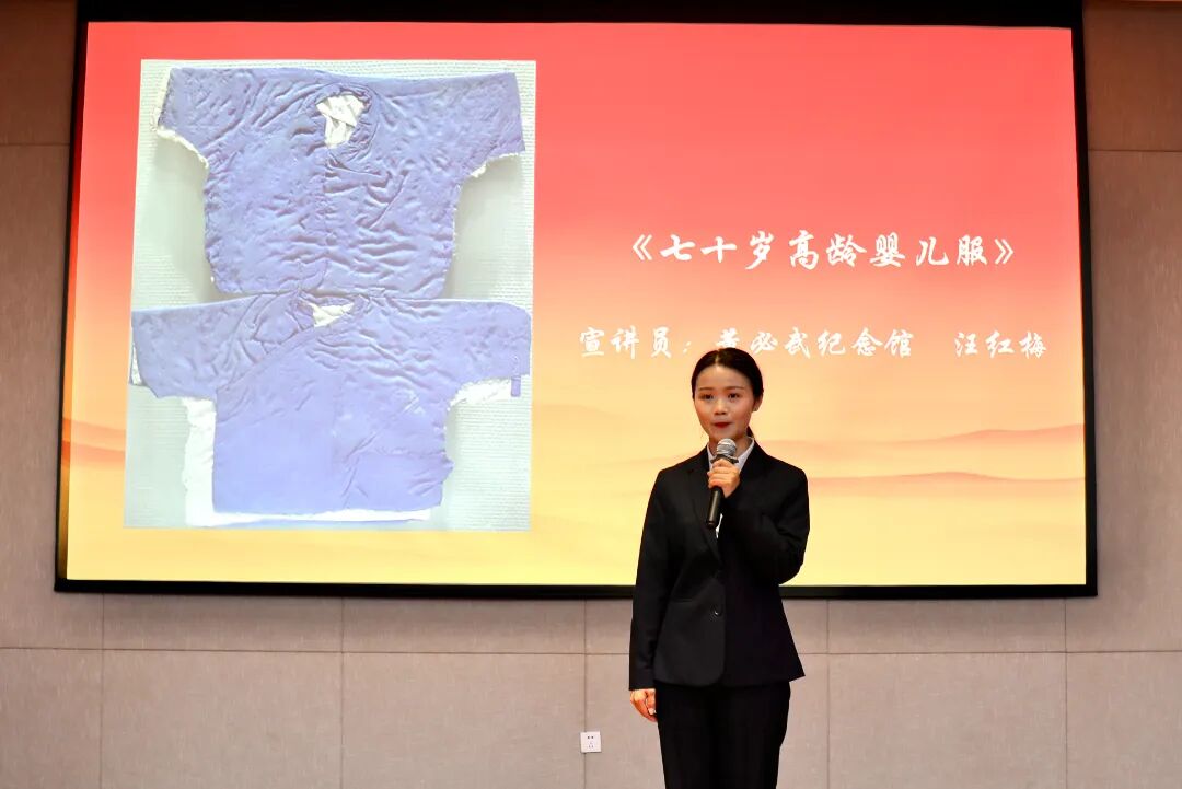 黄麻纪念园宣讲员汪红梅讲述《七十岁高龄婴儿服》,展现了一代伟人董必武勤俭节约的传统美德。