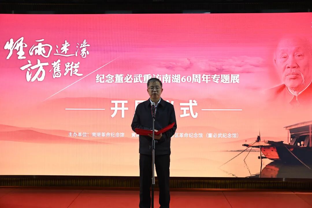 在展览开展仪式上,黄麻起义和鄂豫皖苏区纪念园管理处党委委员、副主任方彬,南湖革命纪念馆党组书记、馆长张宪义分别致辞。方主任致辞表示,我们在此举办专题展览,就是要继承和弘扬董必武等老一辈革命家的崇高精神,更加紧密地团结在以习近平同志为核心的党中央周围,全面贯彻习近平新时代中国特色社会主义思想,大力弘扬伟大建党精神,让红色故事代代传颂,让红色基因代代相传!