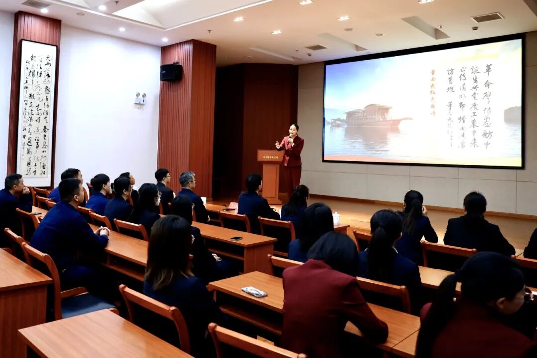 南湖革命纪念馆宣讲员张一讲述《红色初心故事——董必武南湖题诗》,生动讲述了董必武与红船的三次结缘,展现了董老一生“遵从马列无不胜,深信前途会伐柯”的崇高追求和人生信仰。