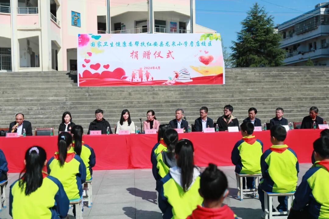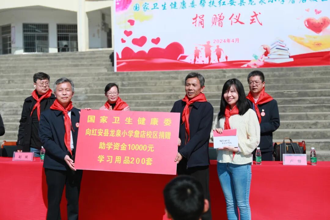 活动中,杨爱平同志代表国家卫健委向红安县龙泉小学詹店校区捐赠学生学习用品及助学金。