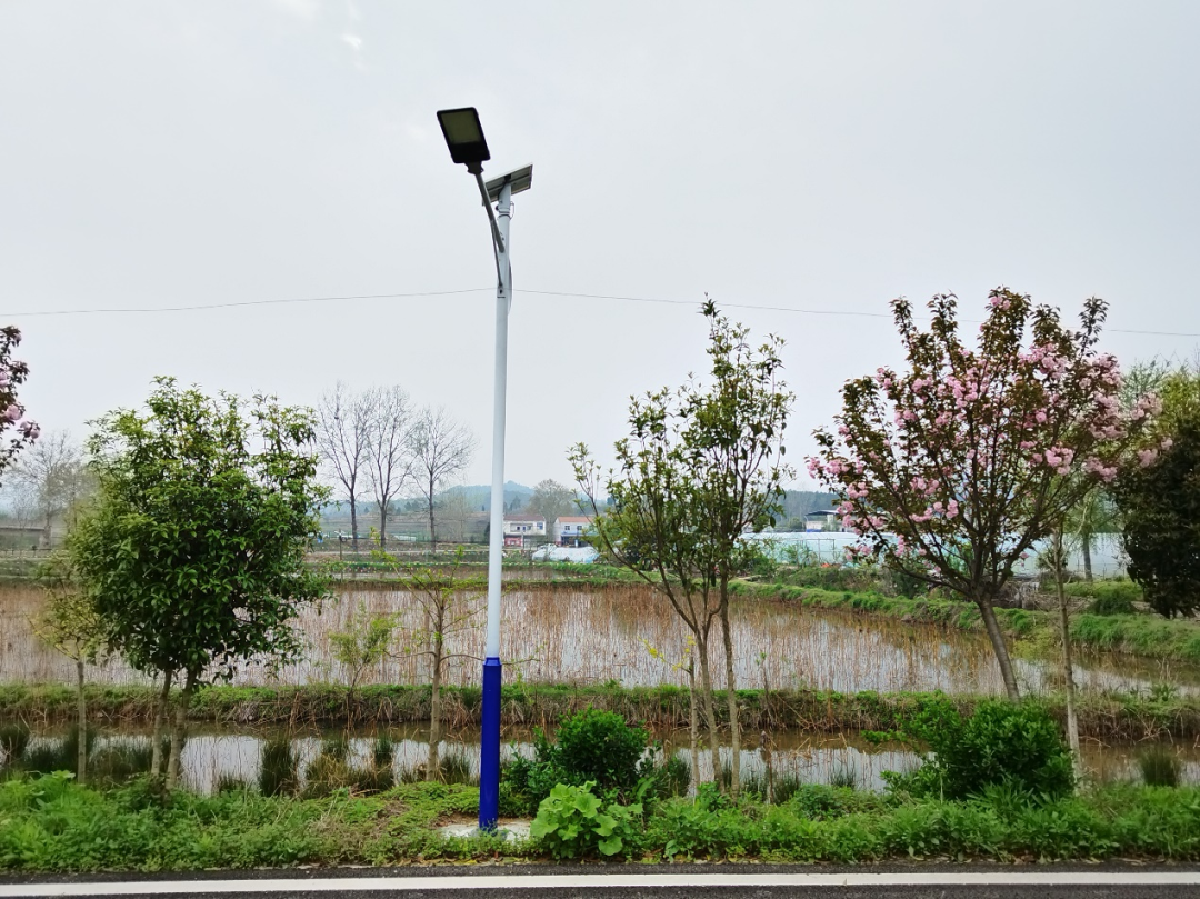 红安网消息 4月8日,随着夜幕降临,红安县华家河镇双河村王家咀湾的群众走在乡间小道时,湾内道路两旁粉红色桃花盛开,灯光明亮,夜间可以安全通行了。