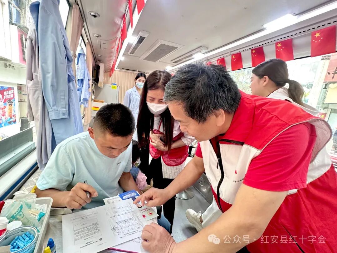 红安网消息 5月9日,红安县红十字会开展“博爱传真情,热血暖人心”无偿献血暨造血干细胞捐献宣传活动。