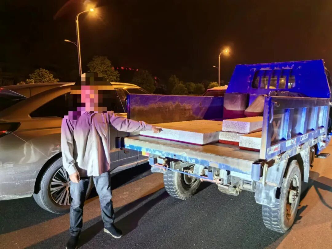 “你不要跑,我已经报警了!”听到不远处争吵声,民警迅速上前将正欲弃车逃跑的刘某某(男,56岁,武汉市新洲人)擒获,现场查获被盗石材,民警依法将其传唤至派出所展开调查。