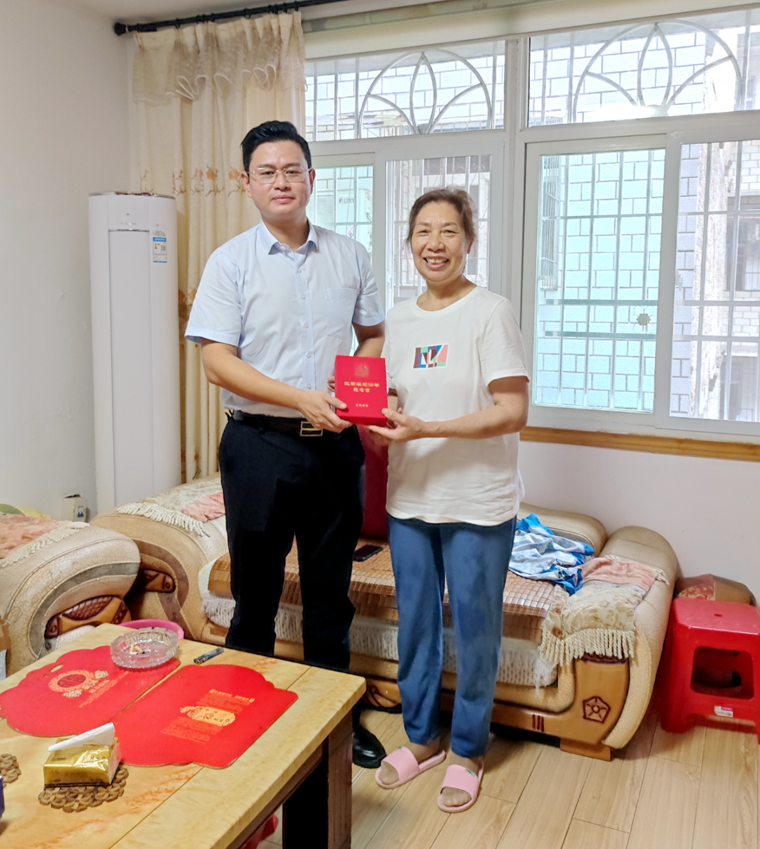 红安网消息 6月28日,在中国共产党成立103周年之际,红安农商行党委书记、董事长李峤来到退休老党员李利怀家中,向其颁发“光荣在党五十年”纪念章,将党的温暖传递到老党员的“心坎上”,并向她致以崇高的敬意和诚挚的慰问。