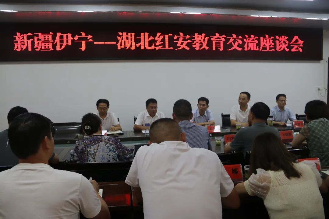 红安网消息 6月30日上午,新疆伊宁县教育系统一行13人来红安一中开展教育交流活动。