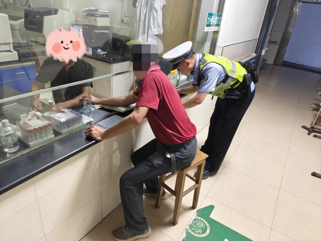 ▲民警带领酒驾人到医院抽血备检