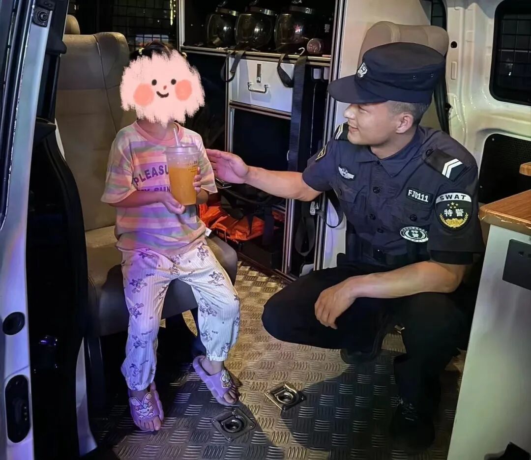▲巡特警队员安抚走失小女孩
