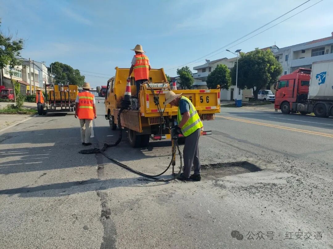 红安网消息 入伏以来,高温天气持续“火力全开”,阵阵热浪让人酷热难耐。红安县公路部门养护人员无惧烈日的“烤”验,不怕暑气的熏“蒸”,默默坚守在公路养护的第一线,用辛勤的汗水和不懈的努力,守护着公路的畅通与安全。