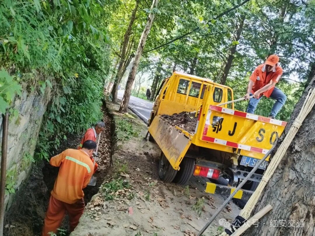 上午10点,骄阳似火,室外温度攀升至35摄氏度以上。在G346上安线公路沿线,养护农用车缓缓前行,养护人员手持铁锹、锄头等工具,对路肩进行细致的修整。汗水顺着脸颊和后背不停地流,橘红色的衣衫湿了又干,干了又湿。
