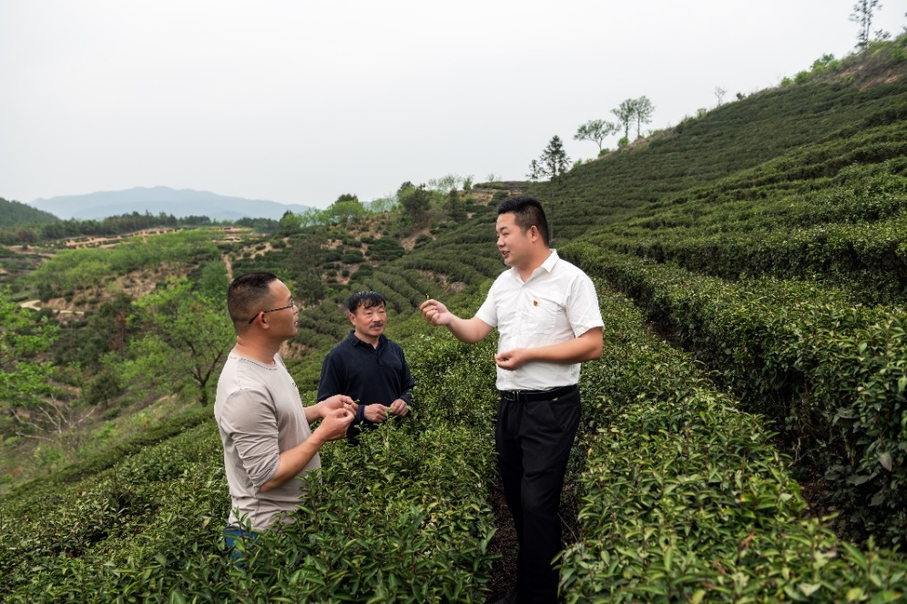班子稳定了,办公场地解决了,秦泽稳开始着手布局产业发展。秦湾村地处老君山山脚,茶叶是村民们的主要经济来源之一。秦泽稳多次走访农户后发现,秦湾村茶叶产量低,效益差。于是,他充分发挥自己大学辅修的销售知识,牵头成立合作社,以村党支部领办合作社的方式,聘请专业人员对茶园进行提档升级,带领村民发展茶产业。