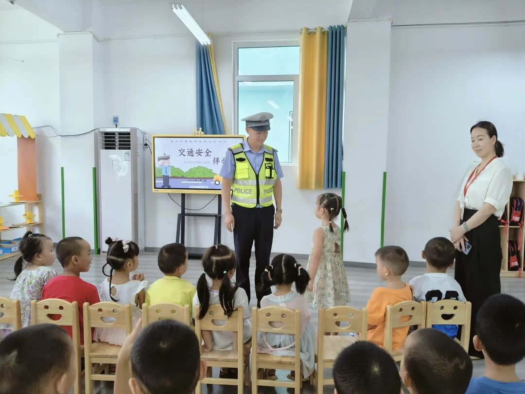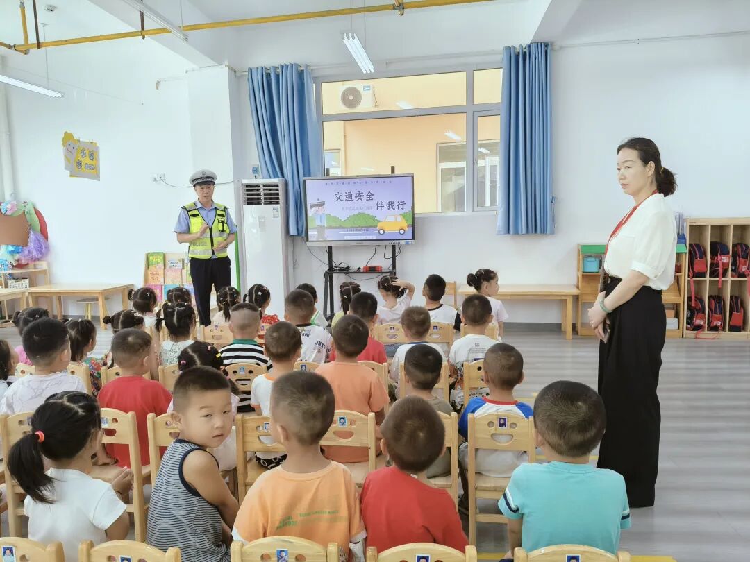 活动中,民警通过播放典型事故案例,通过以案说法的方式教育幼儿上下学路上应该注意哪些道路交通安全。随后围绕步行安全、信号灯判断、乘车安全、标志线判断等方面内容向幼儿进行讲解,同时采用交通安全知识提问互动、交警标准手势教学、播放安全动画短片的方式,使幼儿了解步行和乘车安全的“五要”“五不要”,明白遵守交通规则的重要性,引导幼儿从小养成良好习惯。活动中,民警向全体师生分发交通安全宣传单,鼓励幼儿通过“大手拉小手”的形式,将交通安全常识带回家。