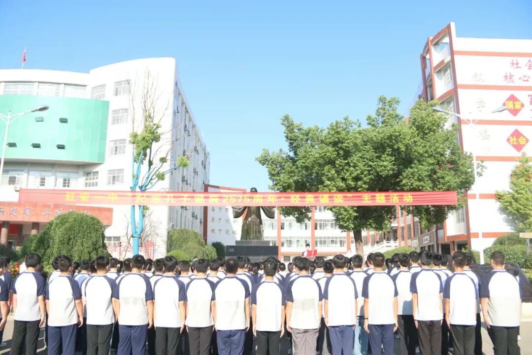 红安网消息 9月28日,红安一中举行“纪念孔子诞辰2575周年暨经典诵读”活动,百余名师生怀着崇敬之心齐聚一堂,共同缅怀至圣先师孔子。学校在家班子成员、全体语文教师、2024年新进教师及学生代表参加活动。