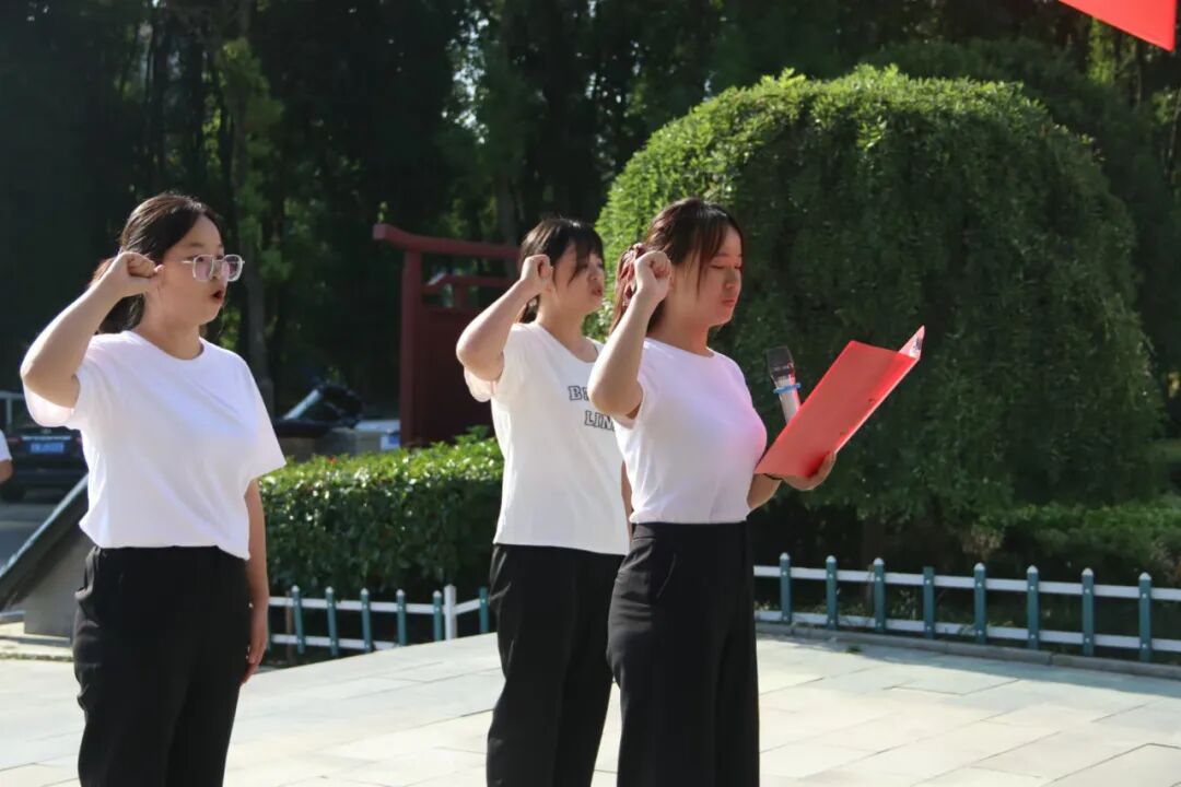 活动中,全员肃立,学生敬献花篮。学生代表张晗秋、周力奥满怀着对孔子的崇敬,字正腔圆诵读祭文;在场老师齐诵儒家经典名句,全体学生齐诵《论语(十章)》;2024年新进教师面向孔子像宣誓,表达对奉献教育事业的决心。