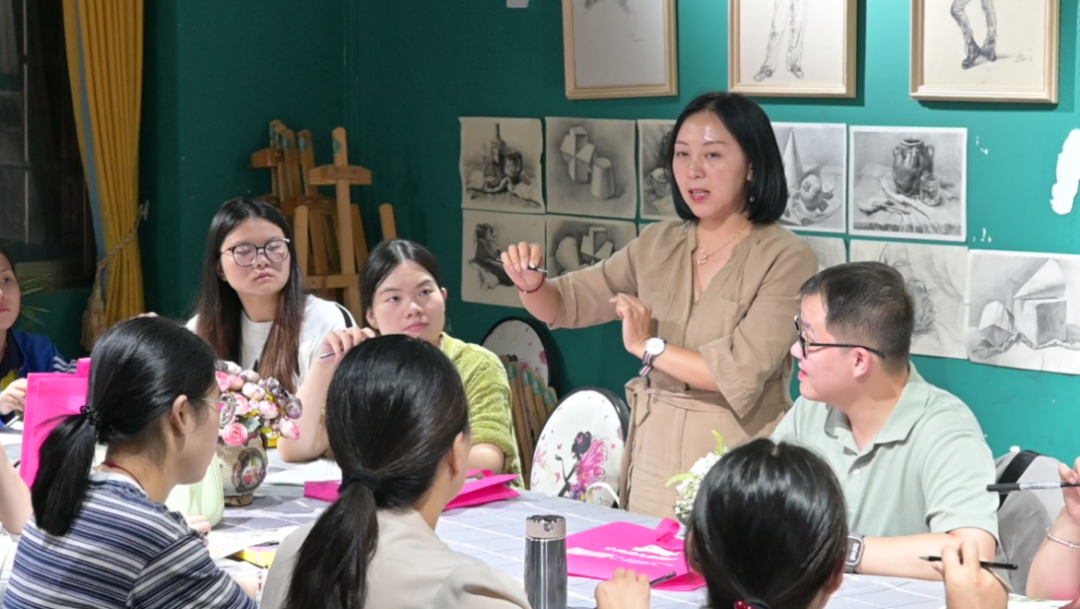 在中国铅笔画课上,江小燕老师介绍了这一形式新颖独特的画种,并介绍了画具特点、绘画指法和笔触技巧。在江老师的认真指导下,学员们逐渐掌握了基本的绘画方法,并从比较简单的蟋蟀、竹节开始练习,用特制的铅笔画出虚实渐变如同“水墨渲染”的明暗立体效果。通过系统的学习与实践,学员们更加深入地理解了中国铅笔画易于上手、画面丰富、艺术感强的特点,一幅幅栩栩如生的画作在青年学员们的细心雕琢下陆续完成,大家兴奋地将画作带回家中收藏,并表示对下次授课充满期待。