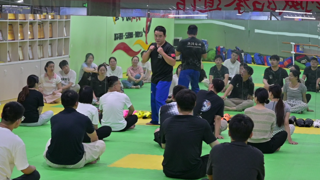 在成人散打搏击课堂上,龚浩锐教练首先带领学员们进行课前的热身运动,有效预防运动损伤,提高运动效果。开课后,龚教练向学员们教授了基础的格斗姿势和移动技巧,并指导学员们运用正确的姿势和发力技巧进行空击,以便提升爆发力、协调性和节奏感。经过反复练习,学员们逐渐掌握了要领,动作越发流畅有力,在互相对练环节中运用自如、挥洒汗水,工作一天的疲惫感也烟消云散。