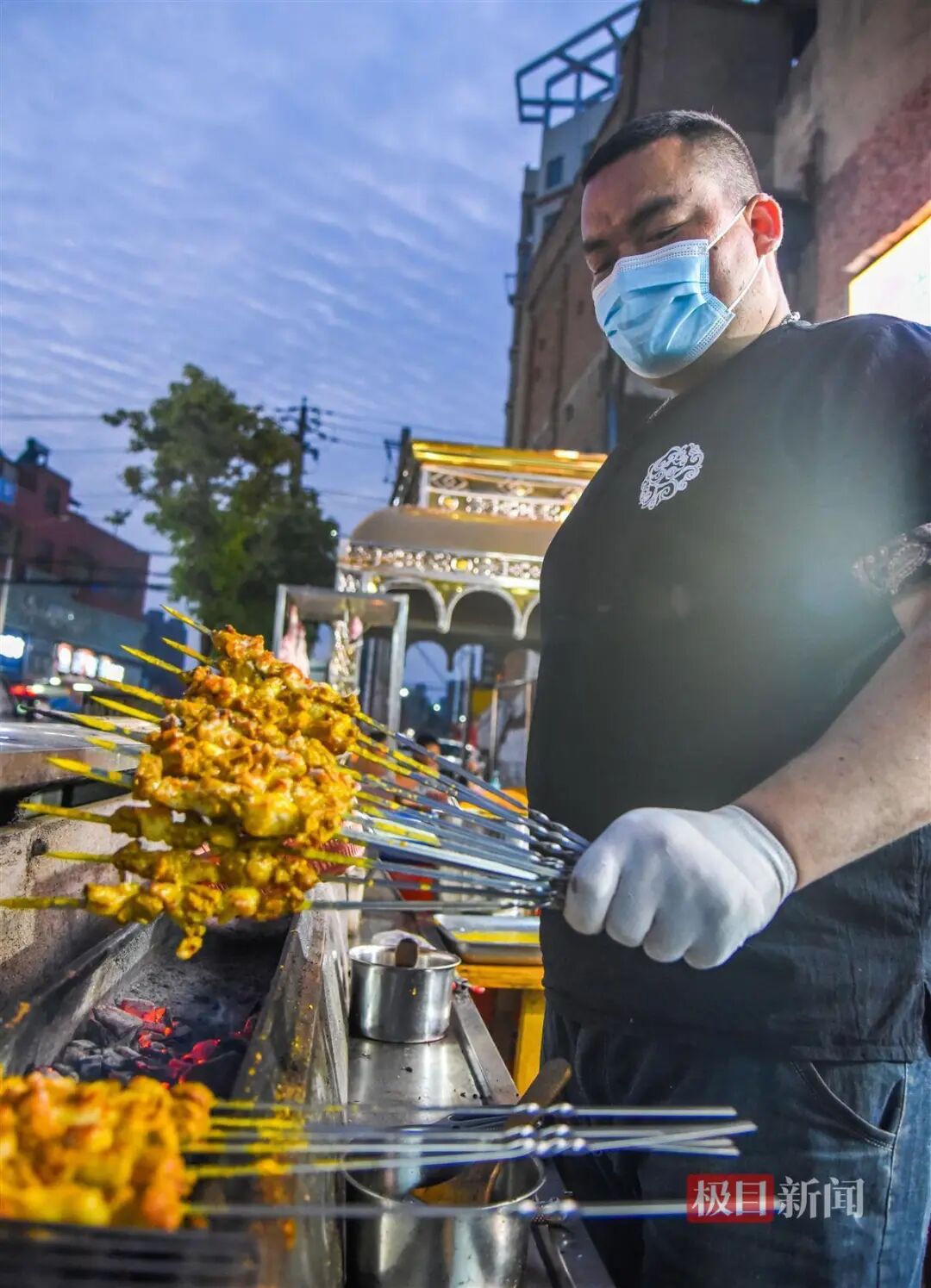 2022年4月18日傍晚,玉苏普江在烤羊肉串。(极目新闻记者 黄志刚 摄)