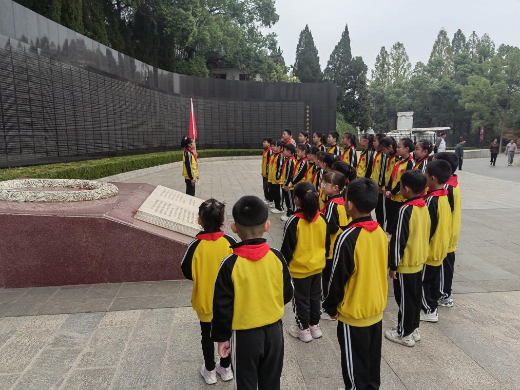 在革命烈士纪念墙前,少先队员们面向鲜艳的队旗,庄严宣誓,齐唱《中国少年先锋队队歌》,铿锵的誓言,蕴含着远大的理想;坚毅的眼神,凝聚着奋发进取的力量;激昂的旋律,嘹亮的歌声,展现了队员们积极向上的精神风貌和朝气蓬勃的青春活力,表达了他们为共产主义事业而奋斗的坚定信念和对祖国的无限热爱。