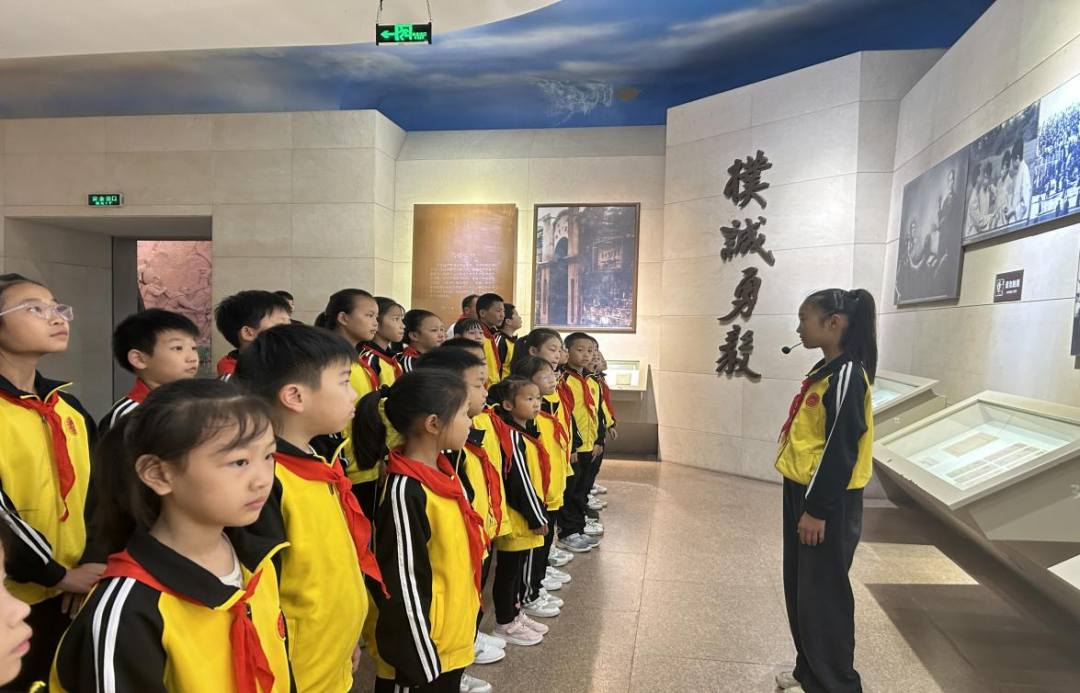 踏着初秋的脚步,带着对革命先辈们的崇敬之心,少先队员们身穿小黄衣,齐戴红领巾,精神抖擞地走进了黄麻起义和鄂豫皖苏区纪念园,有序的参观了历史纪念馆、烈士纪念馆等展馆。从前厅的《大别山雄风》到尾厅的《将军摇篮》,伴随着鲜活的照片、文字、实物以及红领巾讲解员的讲述,孩子们对革命时期的生活场景和历史文化有了更直观的认识,近距离感受了革命先烈的英勇事迹,爱国情怀和民族自豪感也油然而生。