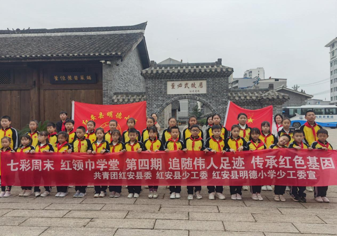 红安网消息 为切实做好青少年爱国主义教育,教育引导青少年树立正确的价值观,培养爱国情怀和民族精神。近日,共青团红安县委、红安县少工委、红安县龙泉小学明德校区少工委组织“红领巾学堂”周末爱心托管班30余名少先队员走进董必武故居,开展了“追寻伟人足迹 传承红色基因”红色教育活动。