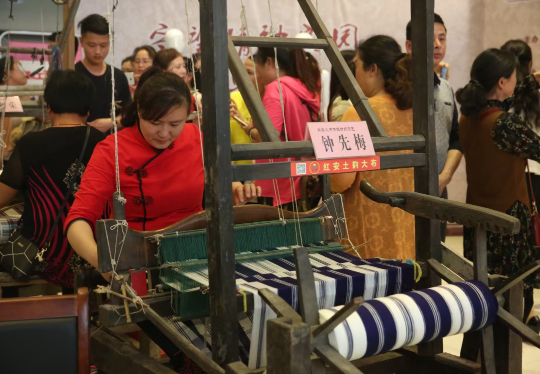 红安将军红土布织锦农民专业合作社(以下简称“合作社”)成立于2010年5月,是一家手工加工生产红安大布系列产品的合作经济组织。2018年,合作社建设“红安大布传统纺织技艺非遗传承中心”并挂牌,中心集红安大布衍生产品生产销售、传统工艺保护传承、宣传推介非遗文化、开展技能培训于一体。中心负责人钟先梅是中国妇女十二大代表,红安大布传统纺织技艺省级代表性传承人。