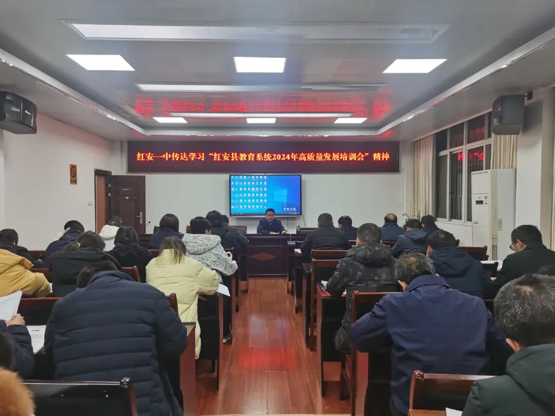 红安网消息 12月9日晚上,红安一中举行十二月份支部主题党日活动,并传达学习“红安县教育系统2024年高质量发展培训会”精神,活动分两阶段进行,学校党委班子成员及全体党员参加。