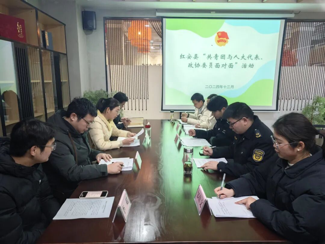 红安网消息 为深入学习宣传贯彻党的二十届三中全会精神,认真学习贯彻习近平总书记关于青年工作的重要思想,更好地了解青年的所忧所盼,借助人大、政协等制度化平台传递青年心声、反映青年愿望,12月31日下午,红安县“共青团与人大代表、政协委员面对面”活动在县新华书店青年之家举行,团县委机关干部、部分人大代表、政协委员及青年代表参加。