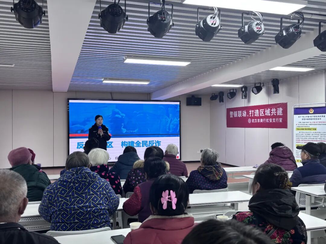 1月20日下午,红安县公安局联合北门岗社区和武汉农村商业银行红安支行共同开展反诈宣传活动,邀请北门岗社区60岁以上老年人和社区群干代表等40余人参加。