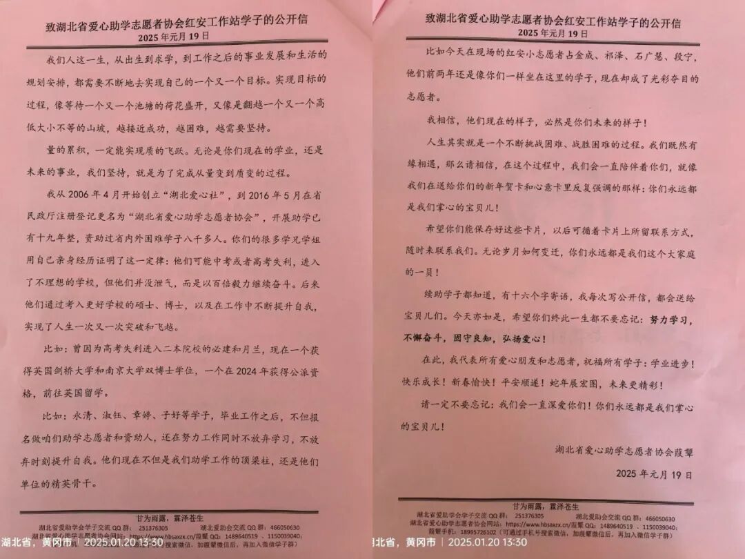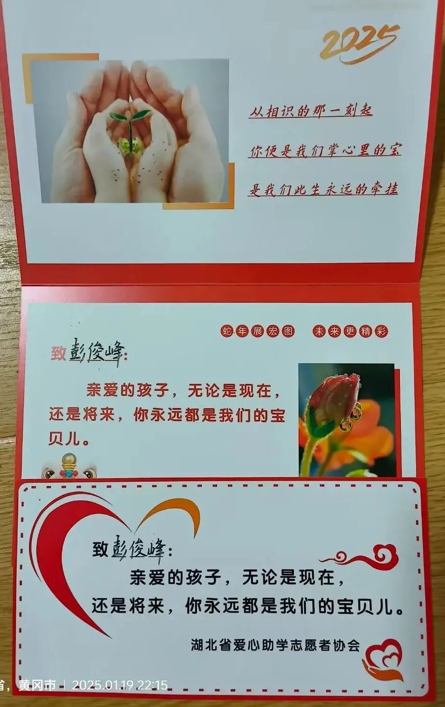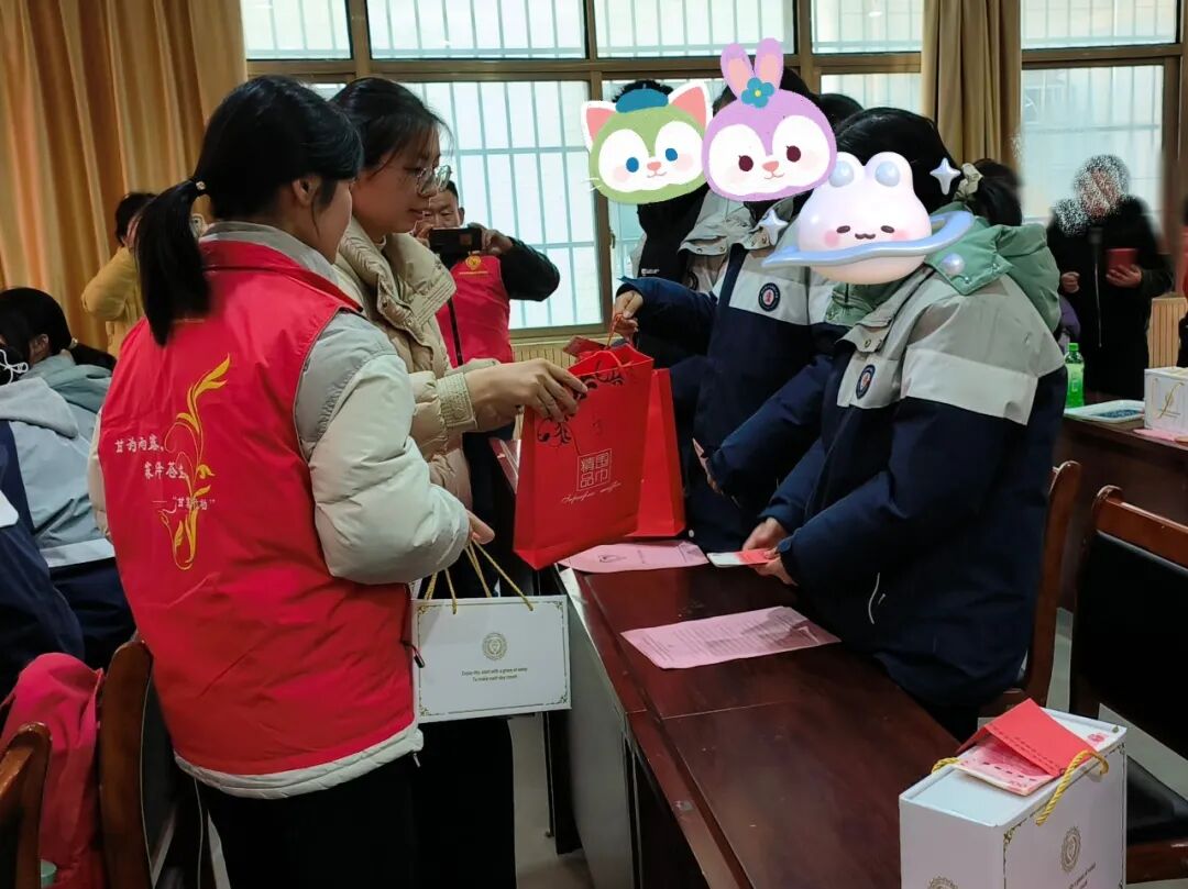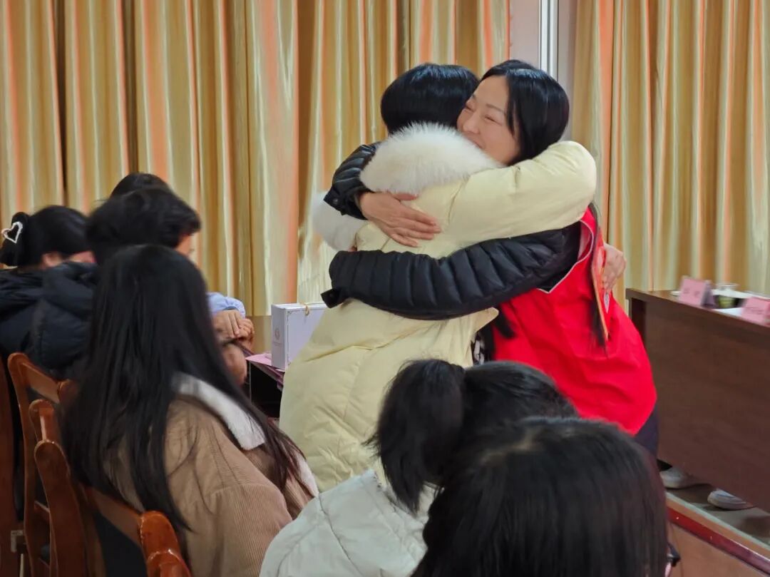 湖北省爱心助学志愿者协会会长吴莺鼓励学子:“人生是挑战困难的过程,协会会一直陪伴。”吴莺会长准备了精美的贺卡并写上新年祝福,她温柔地叫着每一位受助学子的姓名,亲手送上贺卡并与学子们亲切拥抱。