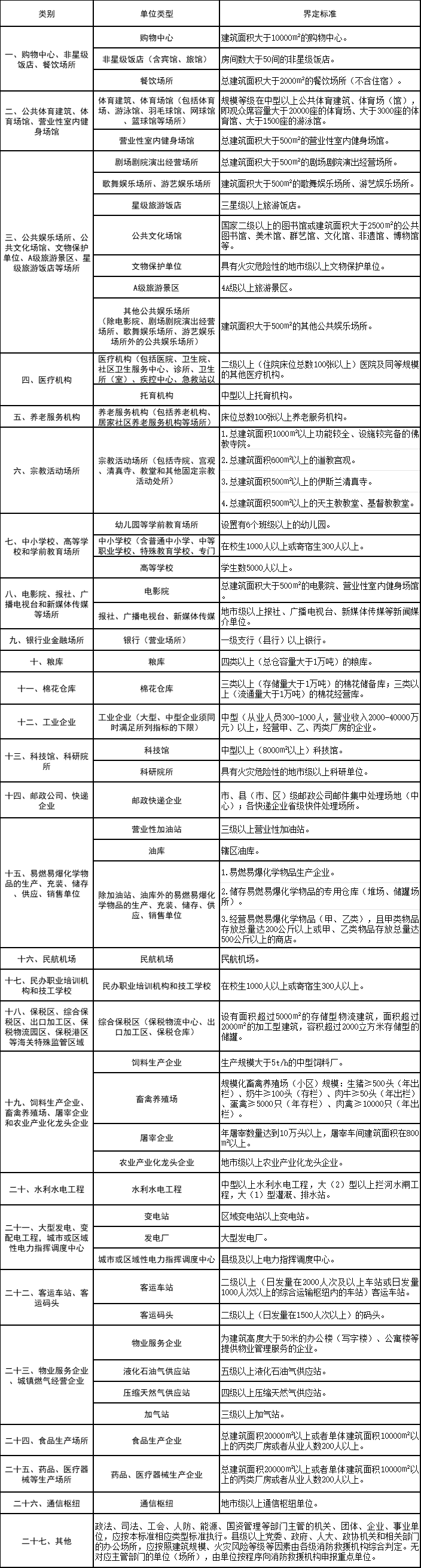 2.火灾风险高,有必要列为重点单位监管,但在《标准》中无准确对应单位类别的,可以按照“业态相近、行业相似”原则,对新业态、新产业按属性予以归类申报。如电竞酒店可按照宾馆进行消防安全重点单位申报,无治疗功能的休养性质的月子护理中心可按旅馆建筑进行消防安全重点单位申报,有治疗功能的月子护理中心可按医院进行消防安全重点单位申报。