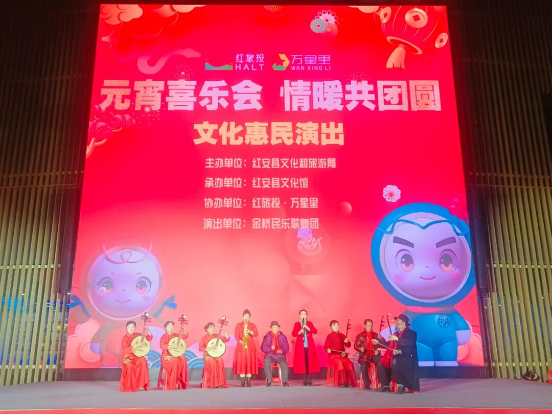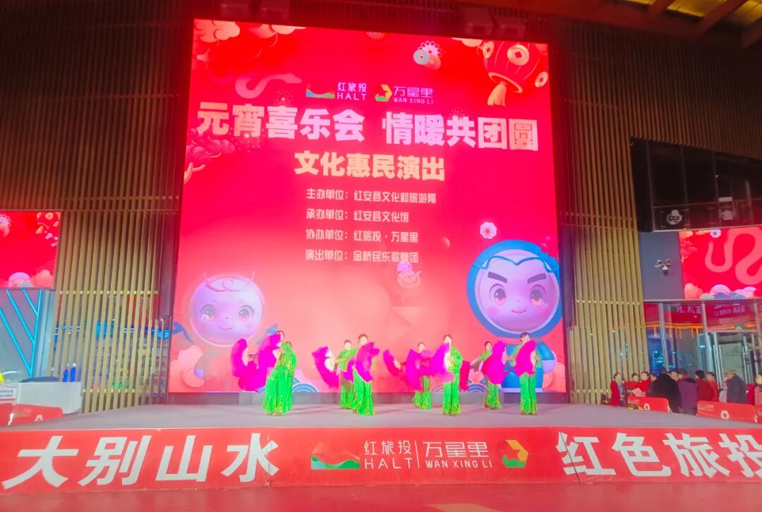 华灯初上,喜乐元宵。2月10日,由红安县文化和旅游局主办,文化馆与红旅投精心承办的“元宵喜乐会 情暖共团圆”民俗专场文化惠民演出在万星里激情上演。锣鼓快板《夸红安》、民俗表演《采莲船》、器乐合奏《金蛇狂舞》等具有本地特色的民俗节目轮番登场,黄梅戏《果然喜从天将》、楚剧选段《梁山伯观景》等戏曲选段尽显戏曲的韵味。形式各样的演出让台下观众目不暇接,不时发出阵阵赞叹,脸上洋溢着幸福的笑容。